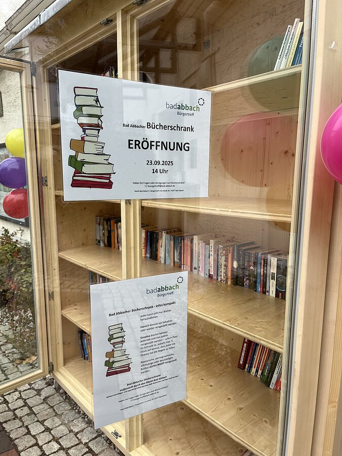 Nach Überlegungen seitens der Verwaltung und einem Antrag in der Bürgerversammlung im letzten Jahr, war es am Dienstag, den 23. September 2025 soweit – der erste Bad Abbacher Bücherschrank wurde in kleinem Rahmen eröffnet.
