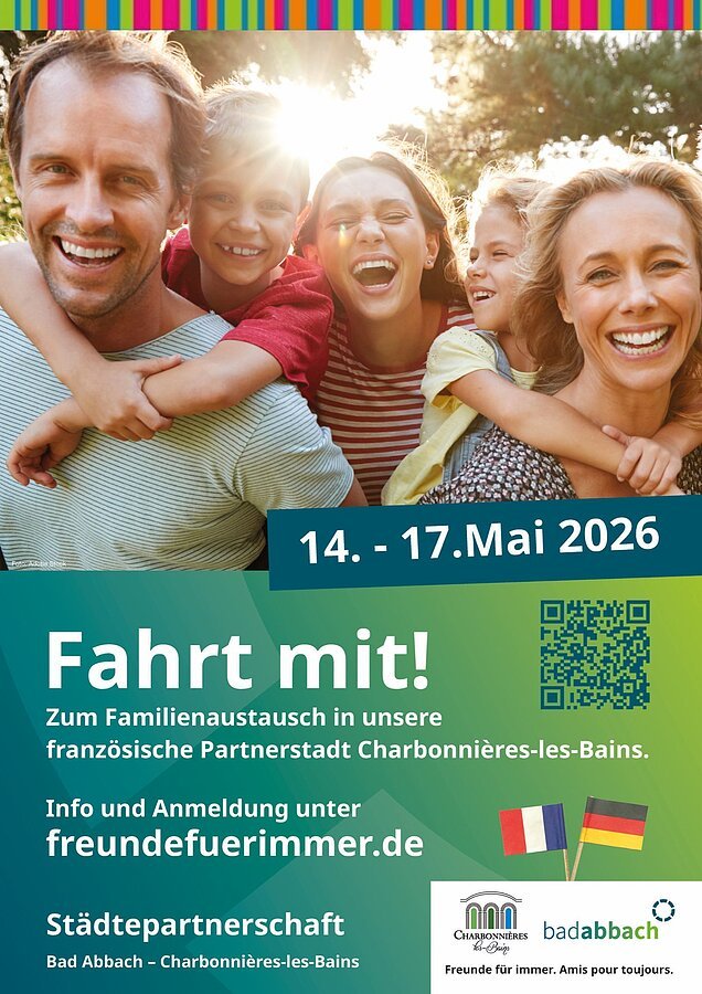 Nutzen Sie die tolle Gelegenheit, neue Freundschaften zu knüpfen, Kultur zu erleben, die deutsch-französische Partnerschaft zu stärken und Kontakte fürs Leben auch mit Bad Abbacherinnen und Bad Abbachern zu knüpfen!