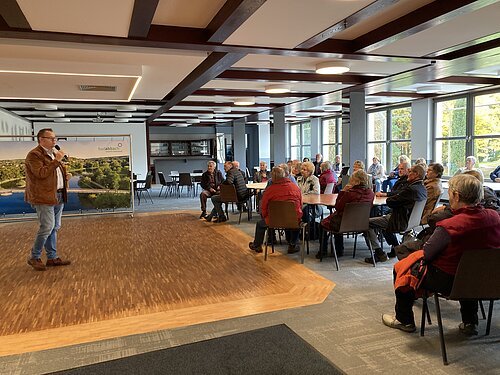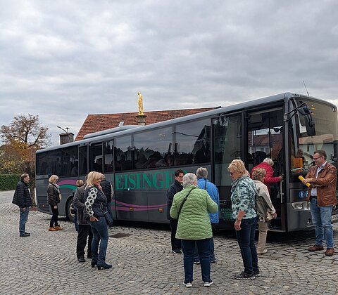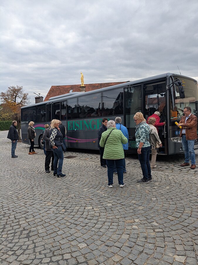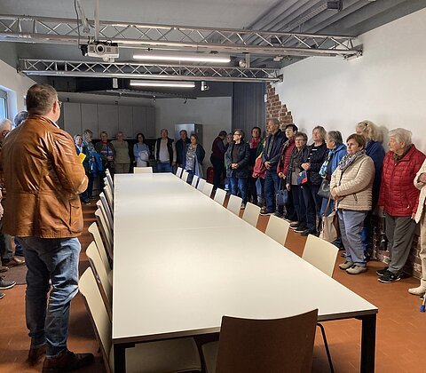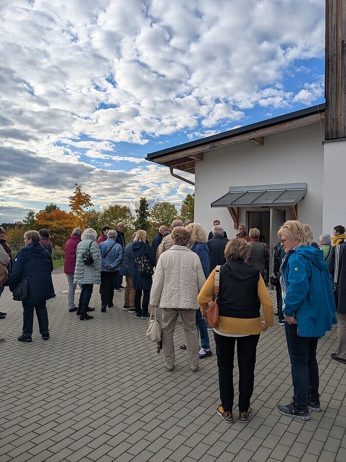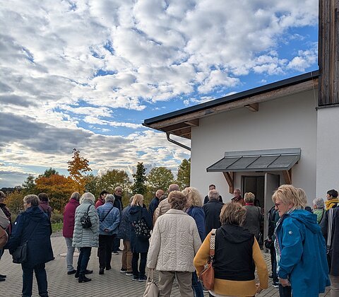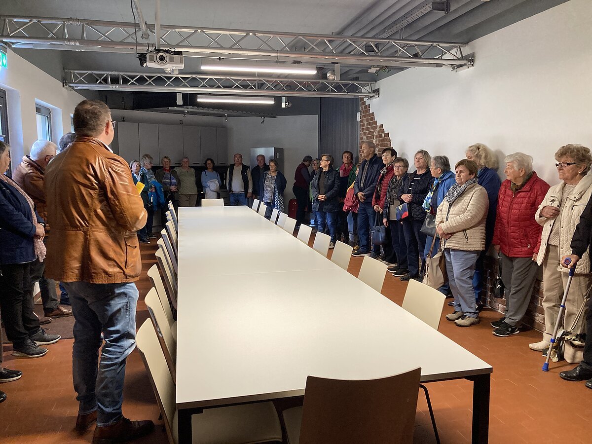 Im Anschluss ging es mit dem Bus nach Dünzling, um das Dorfgemeinschaftshaus "Schulhaus Dünzling" zu besichtigen. Das ehemalige Schulhaus ist mittlerweile zum Treffpunkt der Dünzlinger geworden. Die meisten Anwesenden kannten das sanierte Haus noch nicht und waren sehr interessiert.