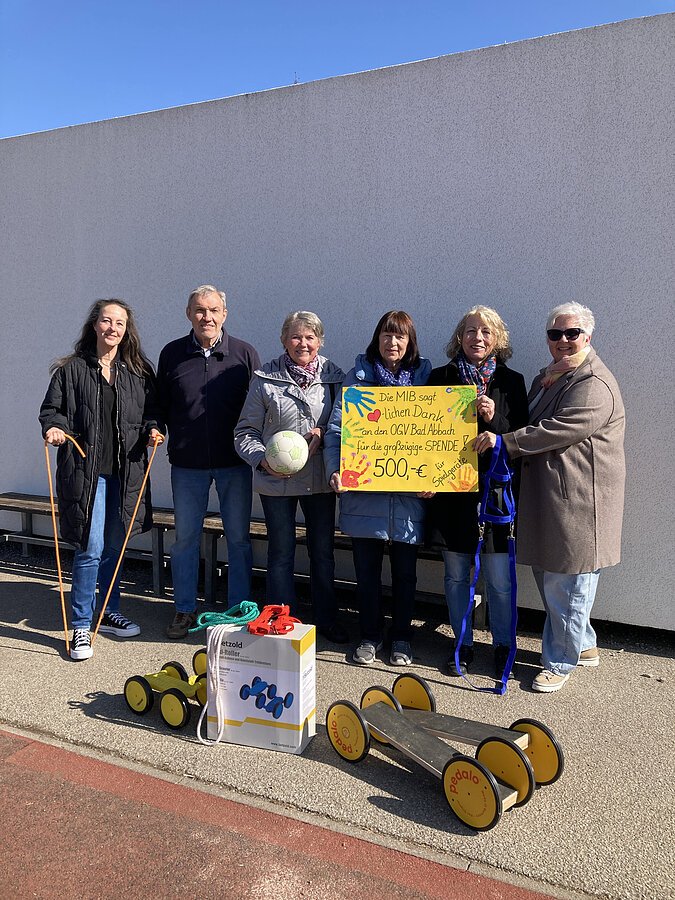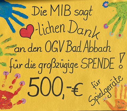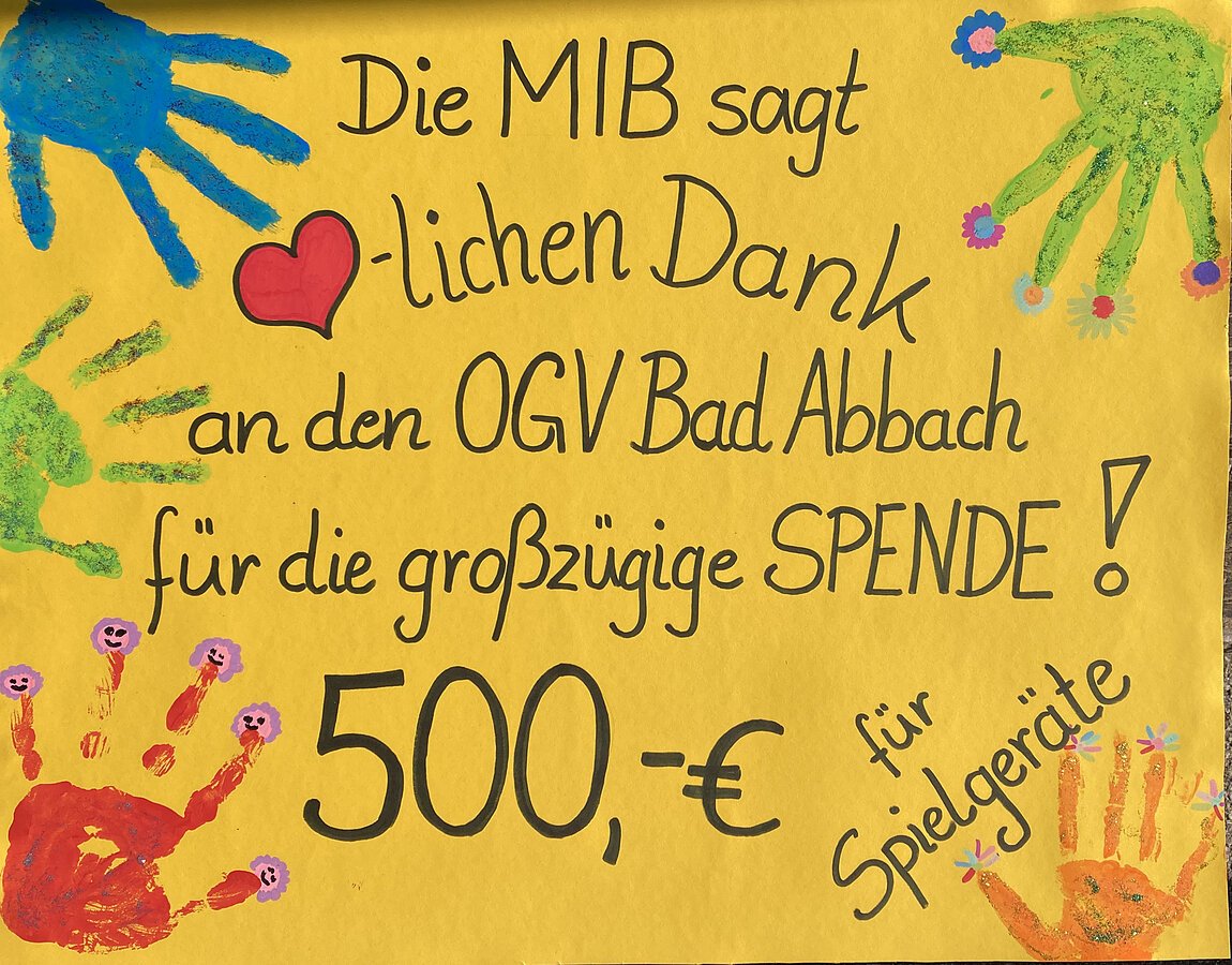 Einen Scheck über 500 Euro überreichten heute symbolisch die Vorstandsmitglieder des Obst- und Gartenbauvereins Bad Abbach. Das Geld wurde vom Verein bei verschiedenen Veranstaltungen mit Kaffee- und Kuchenverkauf erwirtschaftet und kommt jetzt den Schülerinnen und Schülern zu Gute. Diese freuen sich riesig und durften bereits Wünsche äußern und so wurden schon die ersten Pedalos, Maxi-Roller, Springseile und ein Pferdegeschirr gekauft. Als Dankeschön haben die Kids ein schönes Plakat für den OGV gestaltet.