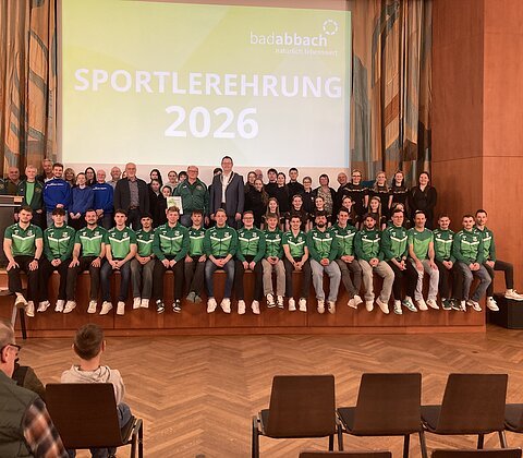 Bei der Sportlerehrung 2026 ehrte Bürgermeister Dr. Benedikt Grünewald die herausragenden Leistungen in 2025 von Bad Abbacherinnen und Bad Abbachern.