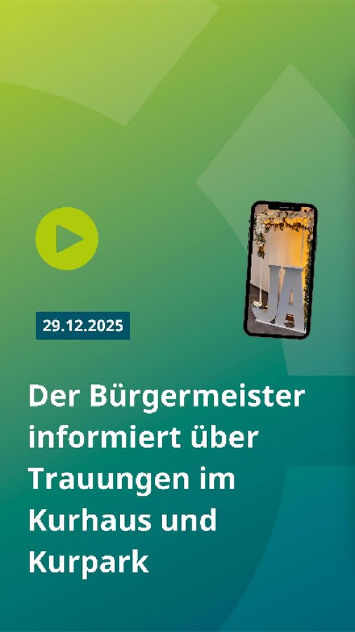 Bürgermeister Dr. Benedikt Grünewald informiert Sie über die neue Möglichkeit, sich im Kurhaus und bald im Kurpark trauen zu lassen.