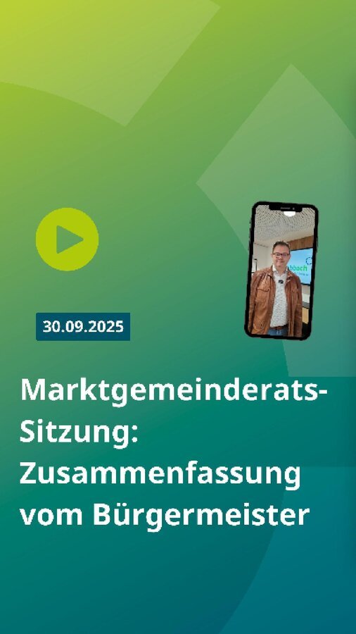 Anbei finden Sie eine kurze Zusammenfassung der wichtigsten Themen der Marktgemeinderatssitzung vom 30.09.2025 von Bürgermeister Dr. Benedikt Grünewald.