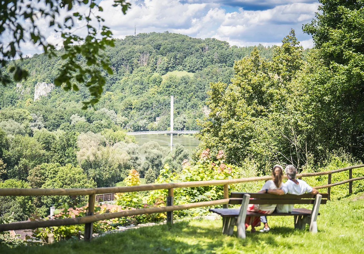 Von der Anhöhe aus eröffnet sich ein weiter Blick über das Donautal und die sanften Hügel der Umgebung. Idyllische Spazierwege schlängeln sich den Berg hinauf und um ihn herum. Zahlreiche Bänke laden dazu ein, die Stille zu genießen und den Blick über die malerische Landschaft ins Donautal schweifen zu lassen.