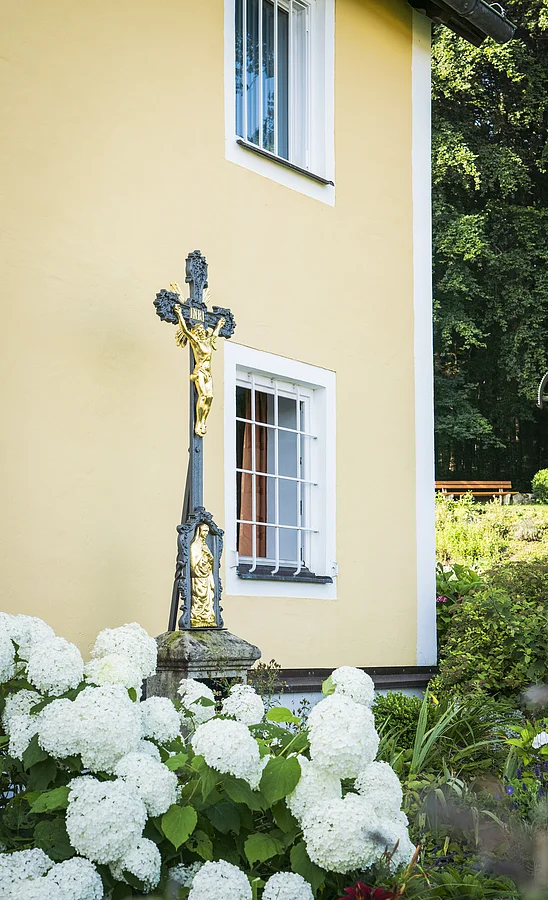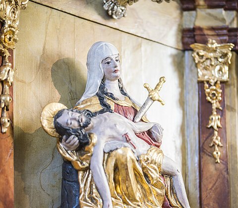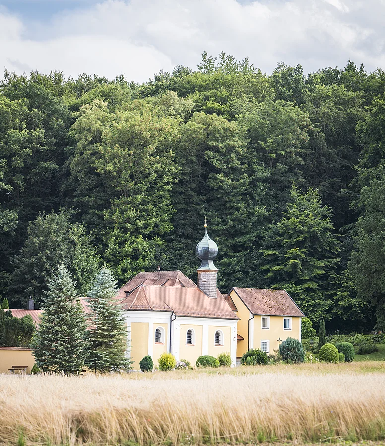 Die Wallfahrtskirche Frauenbründl liegt malerisch am Waldrand nahe Bad Abbach. Besucher erwartet eine barocke Kirche mit schlichter Eleganz, die sich harmonisch in die Natur einfügt. Im Inneren zieht die Pietà der Schmerzensmutter aus Terrakotta die Blicke auf sich.