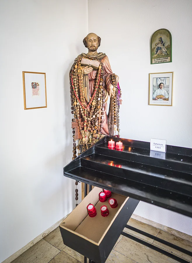 Die angrenzende Kerzenkapelle lädt zum stillen Gebet ein. Kerzenkapelle und Kirche sind täglich geöffnet.