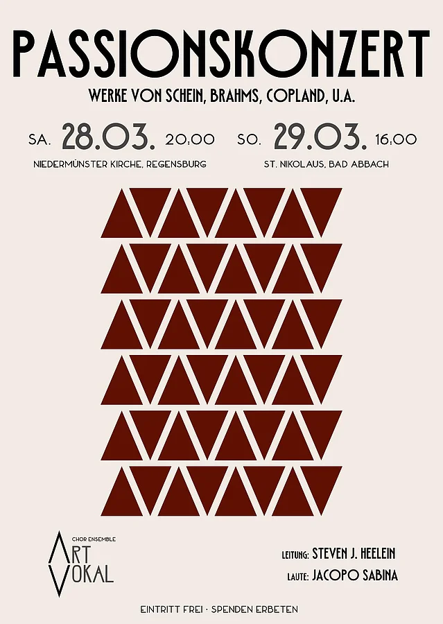 Das Konzert findet am Sonntag, den 29.03.2026 um 16:00 Uhr in der Katholischen Kirche St. Nikolaus in Bad Abbach statt.Der Eintritt ist frei.